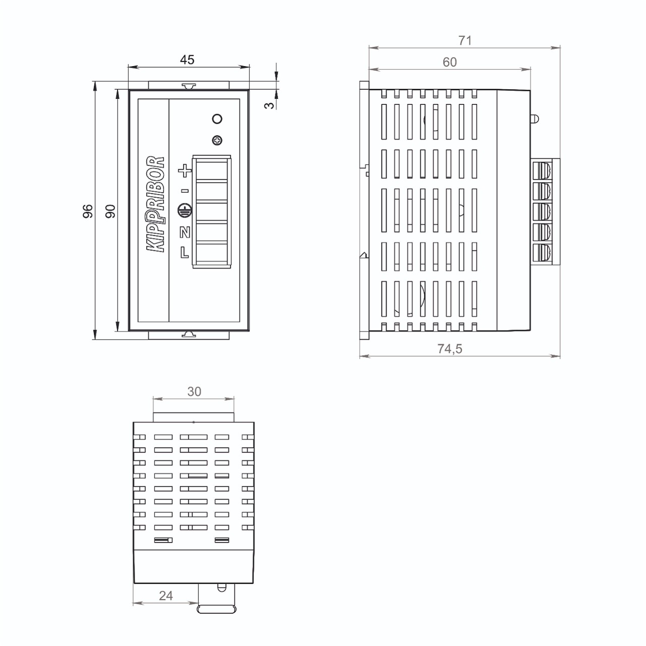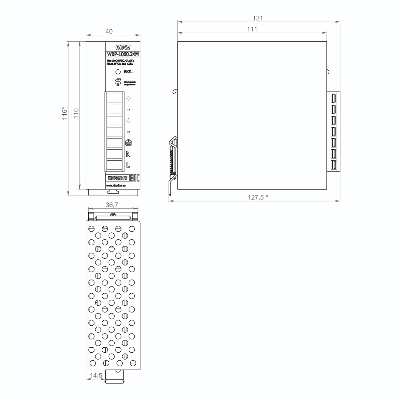 Вы заказали одноканальный блок питания, мощностью 60 Вт, с выходным напряжением 24 VDC в металлическом корпусе.