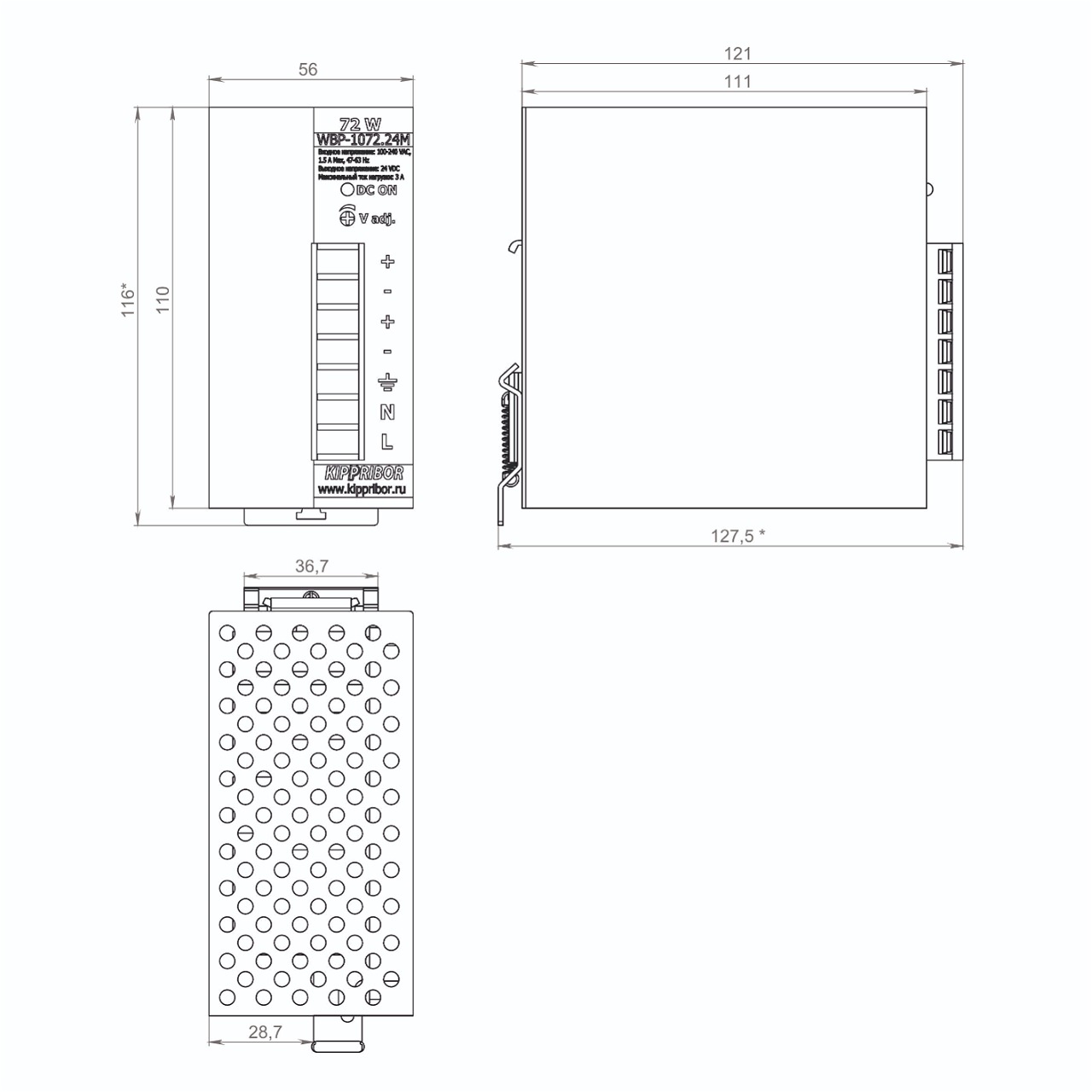 Габаритные размеры промышленных блоков питания KIPPRIBOR серии WBP: