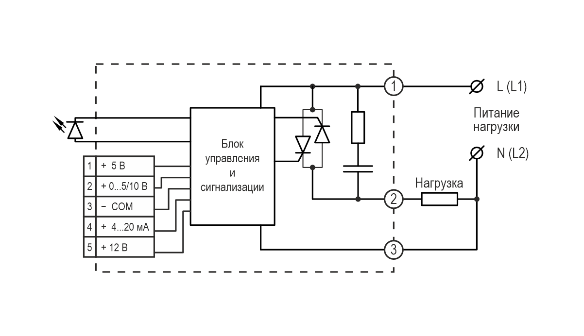- Номинальное напряжение питания нагрузки: 48…380 VAC.