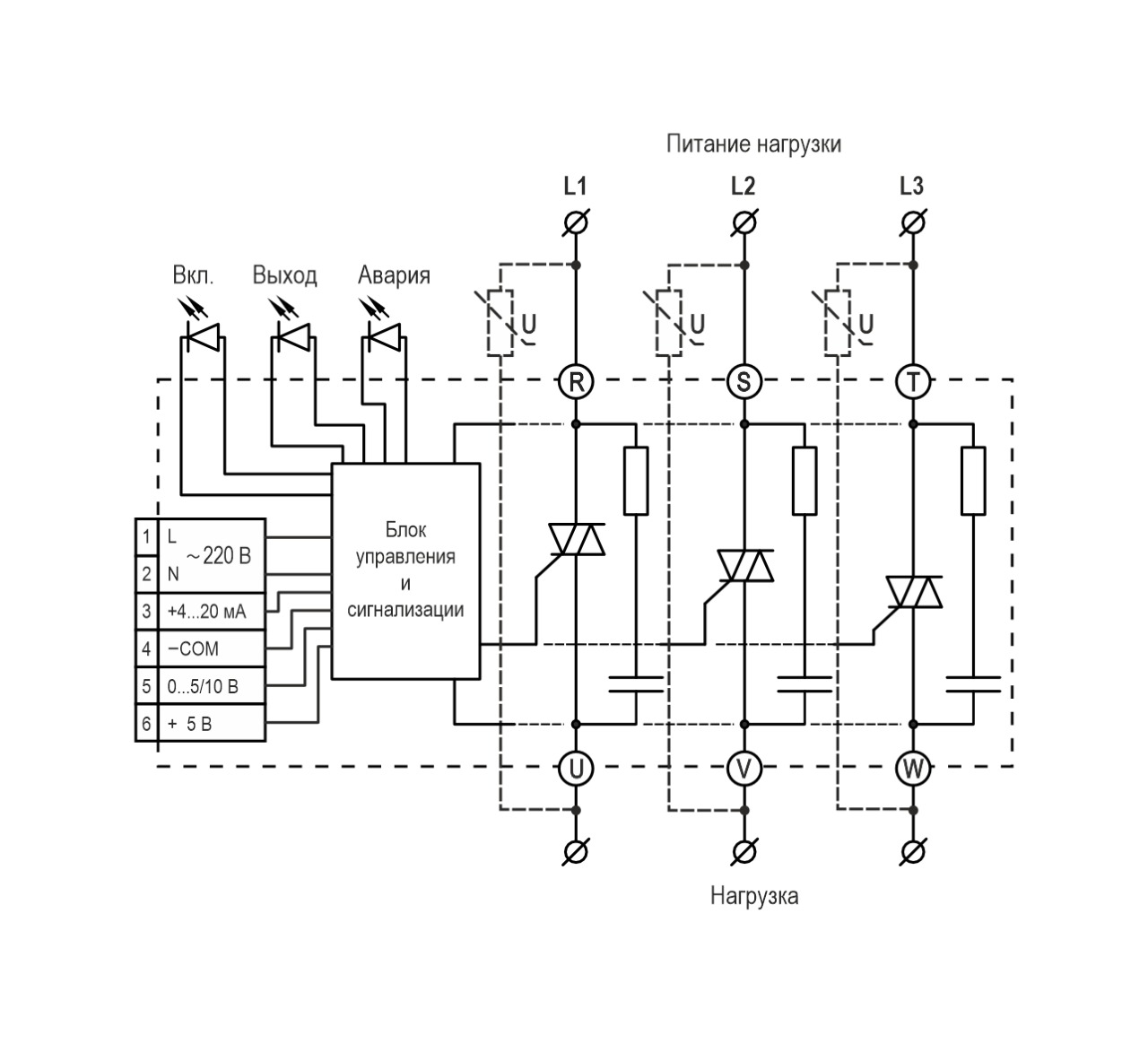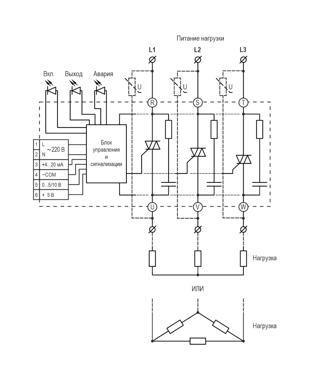ВНИМАНИЕ! В связи с наличием внутренней RC-цепи в силовой цепи регулятора даже при минимальном управляющем сигнале либо его отсутствии присутствует ток утечки, который зависит от параметров нагрузки.