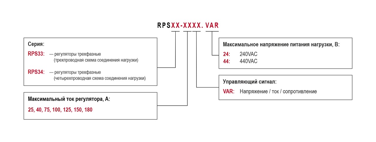 Модификации и номинальные токи регуляторов серий RPS33, RPS34